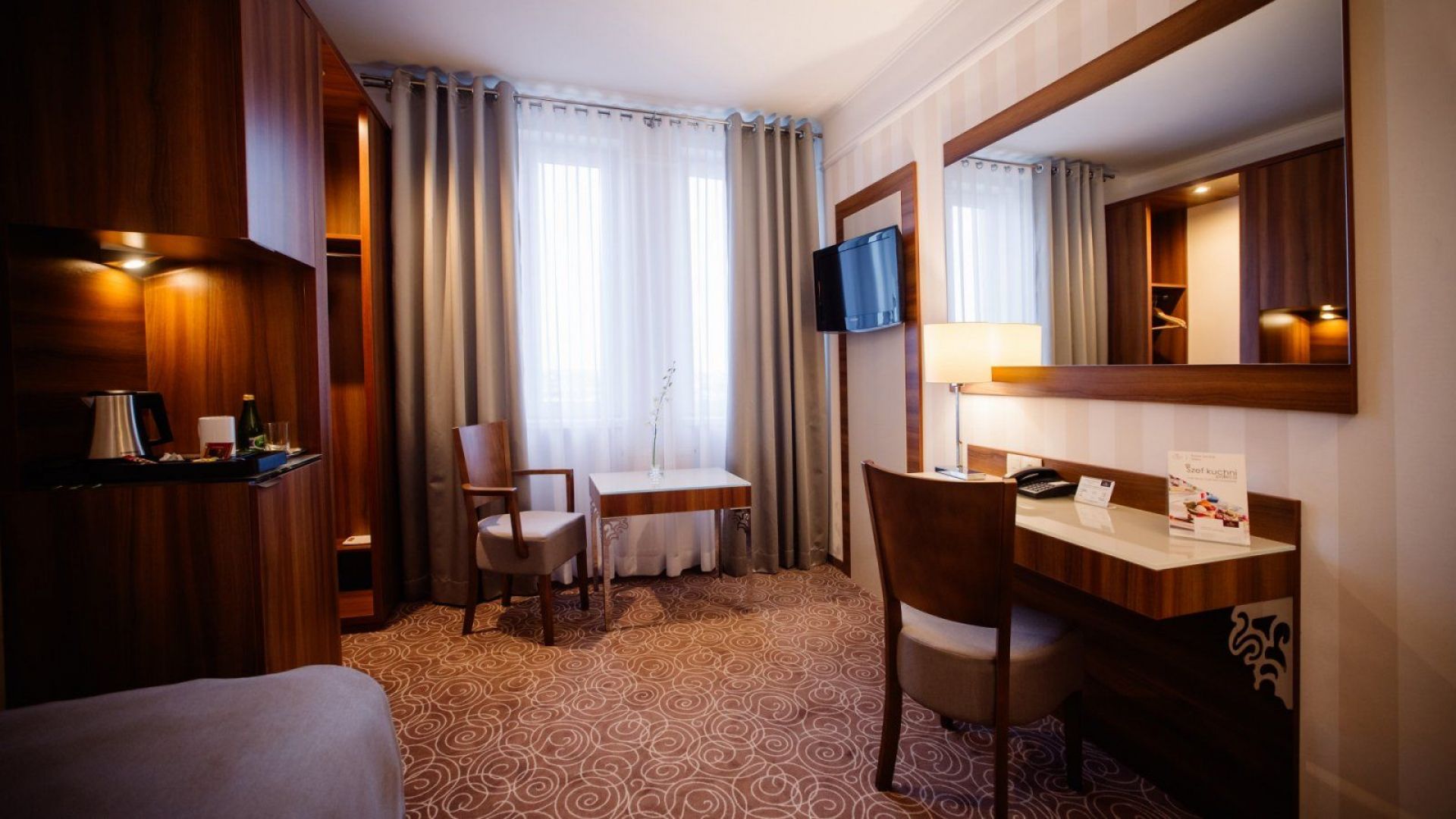Comfortable and elegant rooms (14 m2), with unique and stylish interior. This rooms equipped with one single bed (90/200 cm) , LCD TV and phone. Bathrooms are equipped with showers and hairdryers.Ironing facilities are available at the front desk
